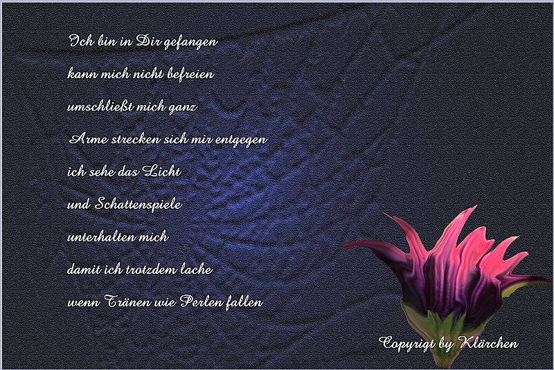 Ich danke Dir sehr liebes Klärchen für Deine tröstenden Worte hier auf diesem Post, das schöne Gedicht und natürlich auch für den lieben Kommentar auf meinem Blog! DANKE 😘