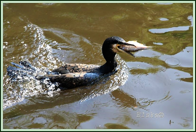 der Komoran hat seinen Fisch gefangen macht ne` Sause